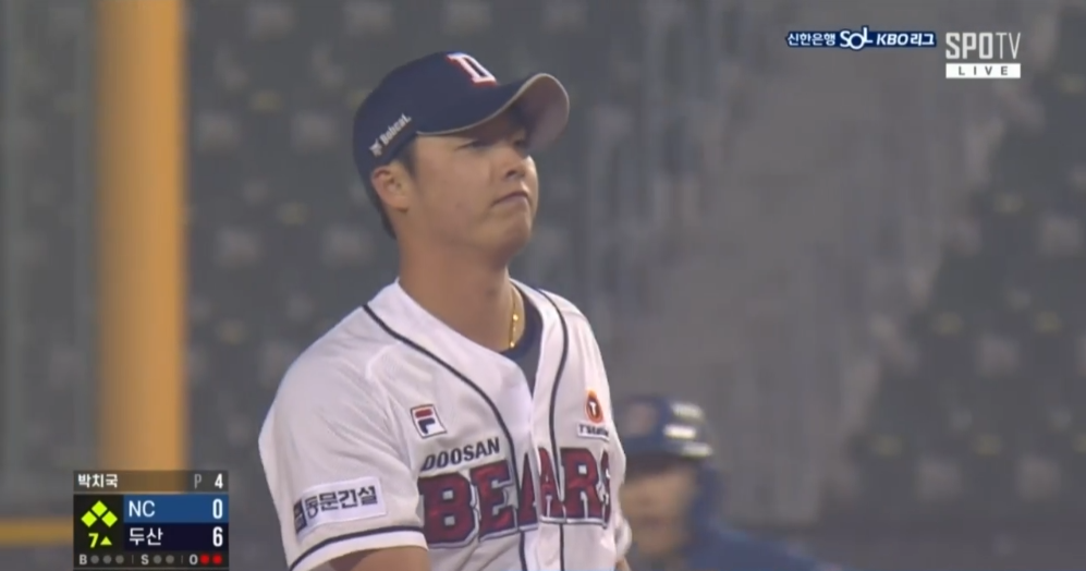 이렇게 만루를 만들고 박치국으로 교체됩니다.