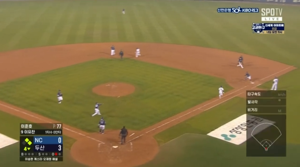 외야수의 거리가 좀 멀어서 2루주자 까지 들어오는데는 무리가 없었습니다