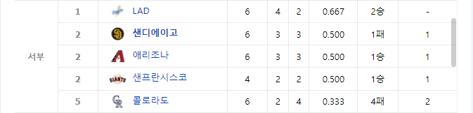 이로써 애리조나와의 2연전은 1승 1패