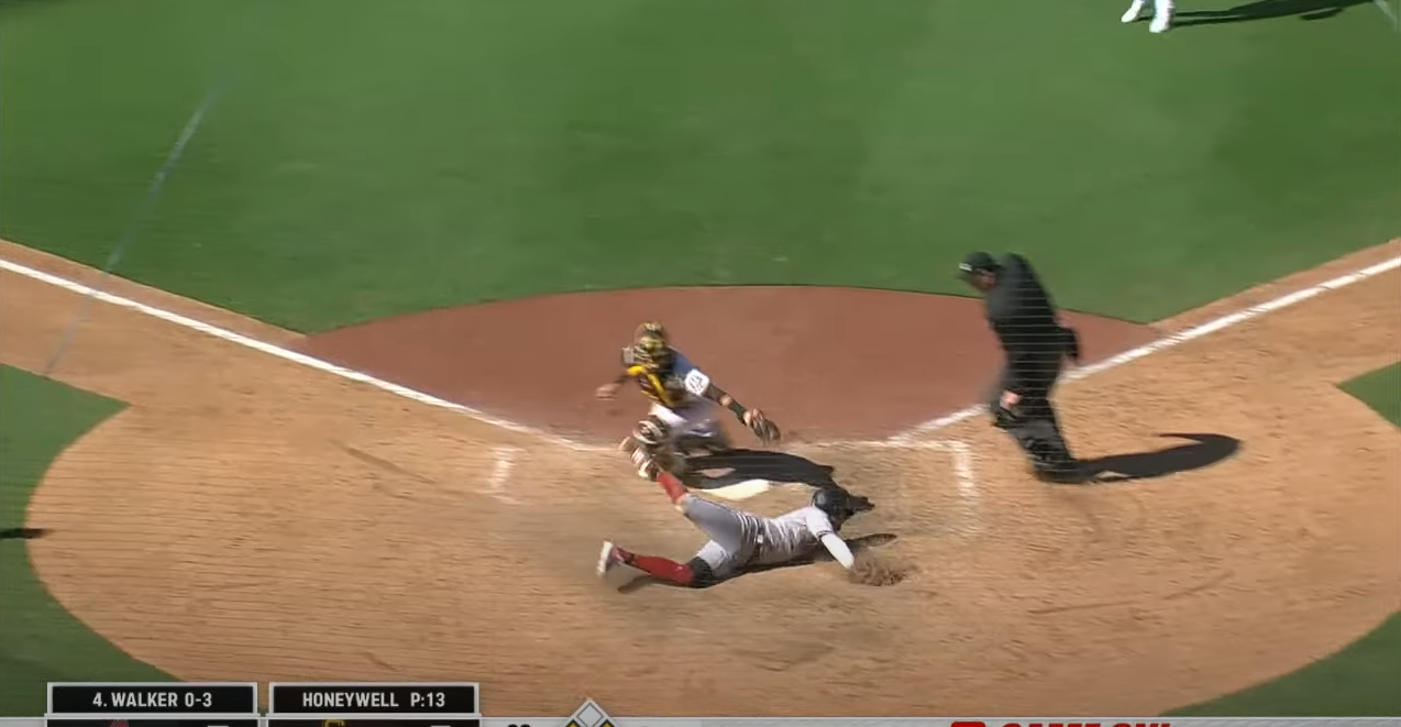 애리조나 에레라가 친 타구는 2루와 중견수 중간에 떨어지는 기가막힌 타구가 나와 도루로 2루에 있던 페도모는 여유있게 홈인 역전에 성공합니다 이후 3번타자 구리엘의 희생플라이로 한점득점