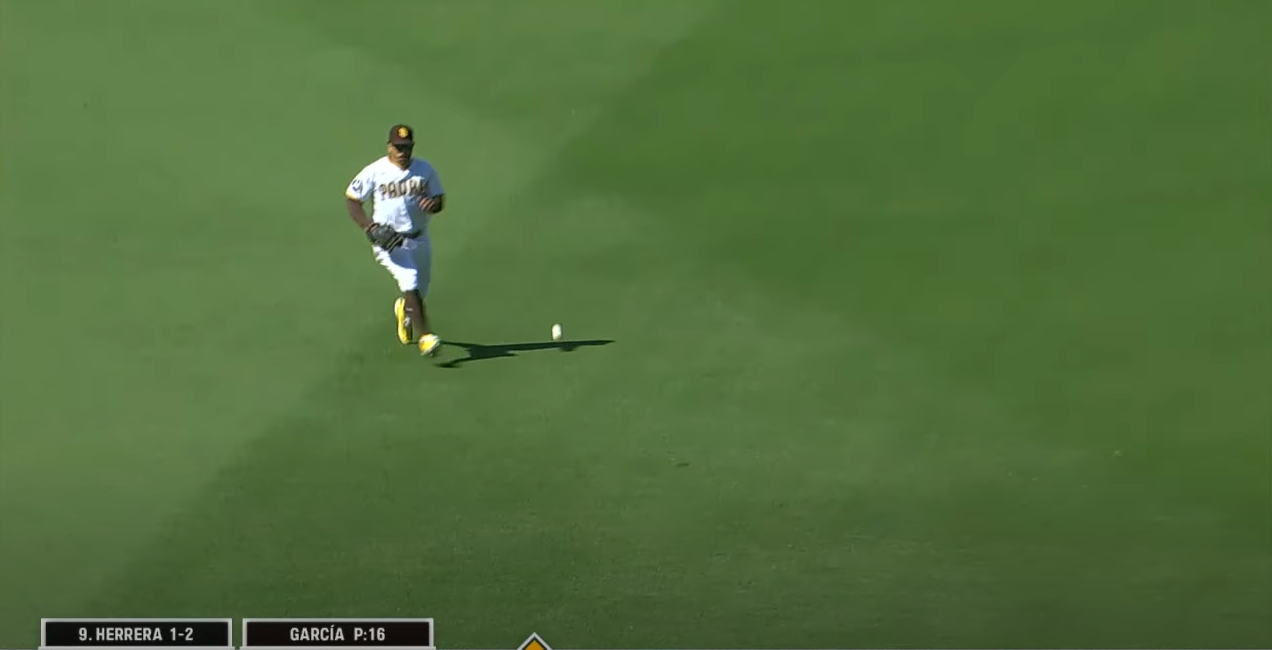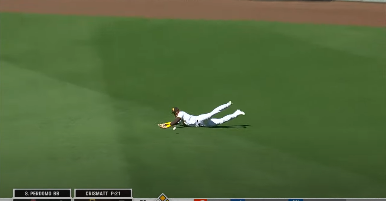 6회초 주자1,2루 투아웃 상황에서 애리조나 페도모 선수가 친 타구가 우익수 방향으로 날라갔는데 다이빙캐치때 글러브에 들어갔다가 포구가 안되어 실책이 되어 2점을 헌납했습니다.