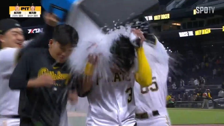 배지환선수 오늘 히어로로써 얼음샤워를 받는 영광을 얻었네요^^
