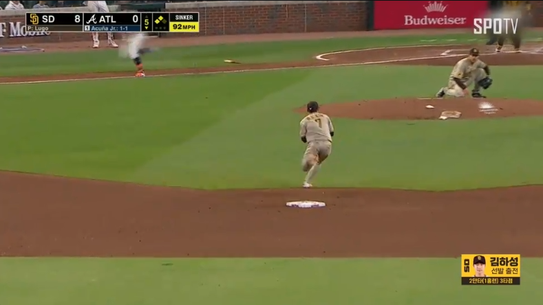 김하성은 1루로 던지는 몸짓을 움찔하더니
