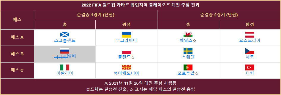 참고로 A시드는 웨일스가 승리, C시드는 포르쿠갈이 승리해서 각각 월드컵 진출성공함!!