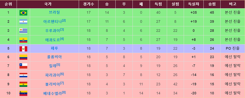 카타르 월드컵에서는 아쉽게도 남미지역예선에서 예선탈락했네요...