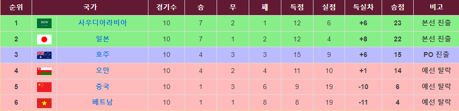 호주 또한 PO로 월드컵 진출했네요. 우선 호주가 속한 지역예선을 보시면