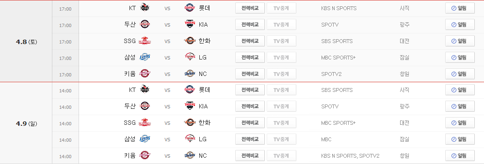 대전상대는 똑같고 토요일은 5시, 일요일은 2시에 경기진행 예정입니다