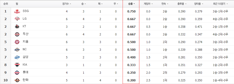 | 프로야구 구단 순위 주요 부문 선두 (4월 19일) (0) | 2023.04.19 |