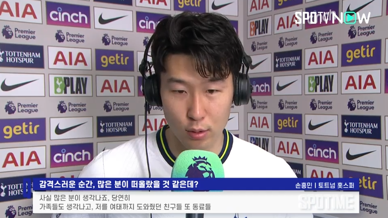 국민분들 축구 팬분들 또 토트넘 팬분들, 전 세계에서 저를 응원해주시는 팬분들 또 많은 분이 기억났지만