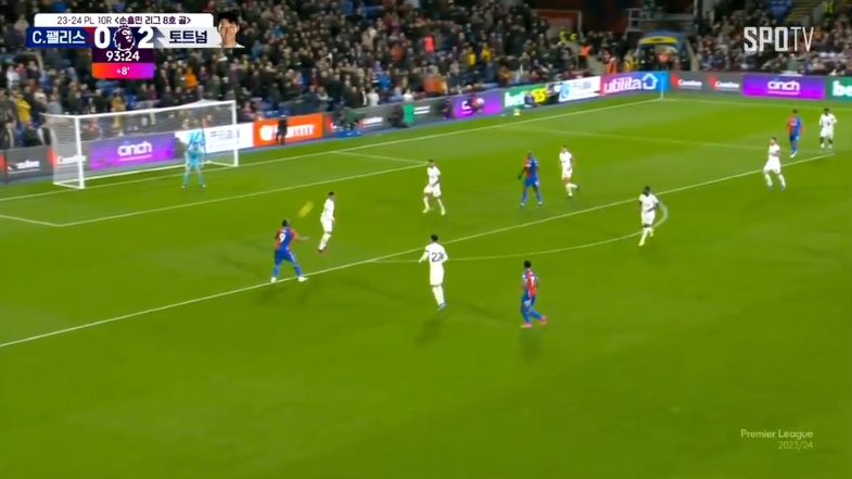 사르의 패스를 받은 메디슨이 팰리스 골문 우측에서 슛을 하는데 팰리스 조엘워드의 발에 맞고 자책골이 되어버렸습니다. 이날 토트넘의 지루한 전략으로 봤을때 팰리스의 자책골을 뼈아픈 실책이었음