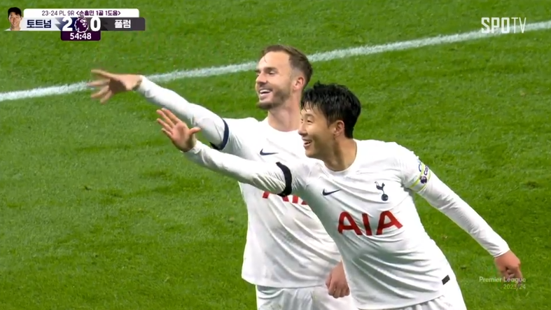 토트넘이 손흥민의 1골 1도움에 힘입어 풀럼과의 홈경기를 2:0 으로 승리했습니다.