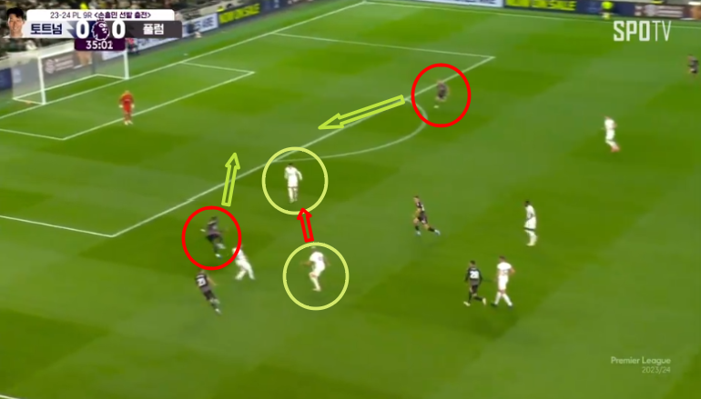 토트넘의 두번째골도 압박으로 인한 패스미스를 논스톱으로 손흥민에게 연결하고 ( 원래 오프사이드 위치인데 패스미스한 풀럼선수가 드로잉라인에서 얼어있어서 오프사이드 안됨 ㅋㅋ)