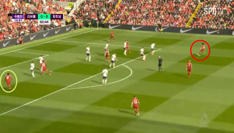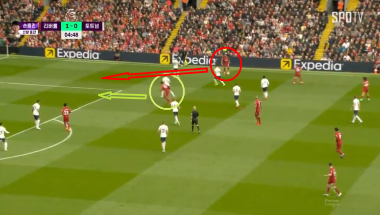 리버풀의 5분도 안되서 나온 두번째골입니다. 각포가 공간침투를 할때 그를 수비하던 사람은 다이어입니다.