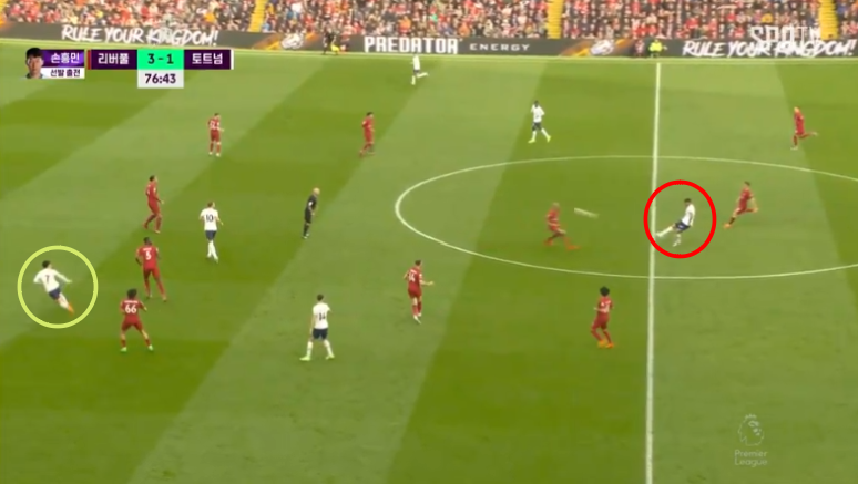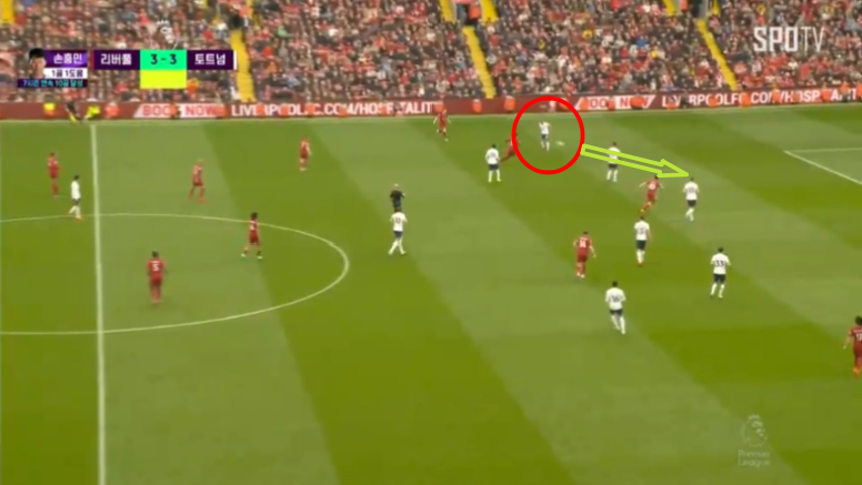 오랜만에 손흥민에게 향하는 원터치패스를 본것 같네요. 오프사이드를 피해서 손흥민 정말 잘 들어갔구요