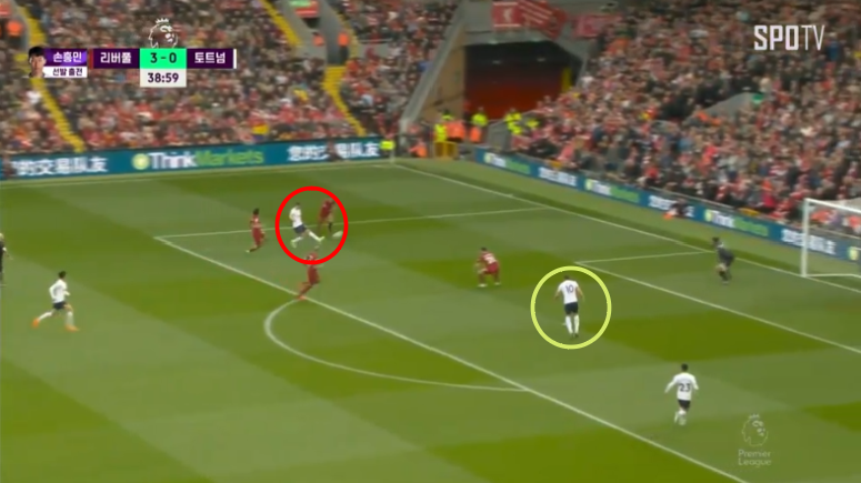 리버풀의 5분도 안되서 나온 두번째골입니다. 각포가 공간침투를 할때 그를 수비하던 사람은 다이어입니다.