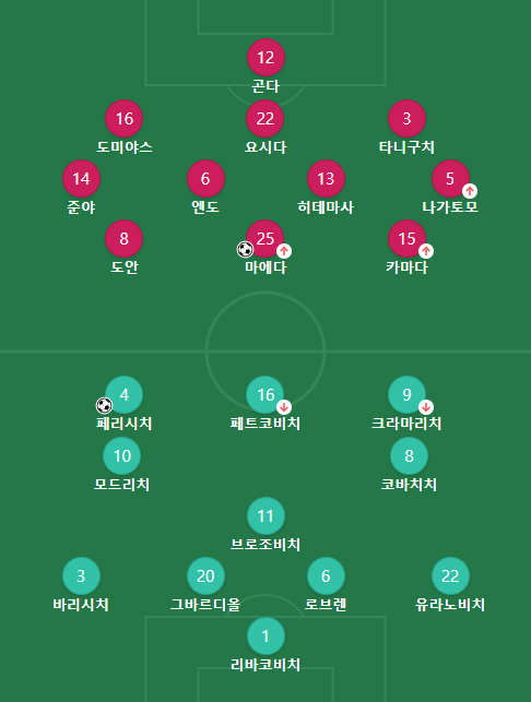 일본의 3-4-3 포메이션과 크로아티아 4-1-2-3 포메이션의 대결입니다.