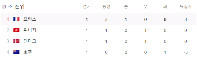 2022 FIFA 카타르 월드컵 (11월 25일 현재순위임)