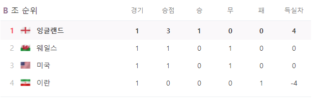 2022 FIFA 카타르 월드컵 현재 조별리그 성적