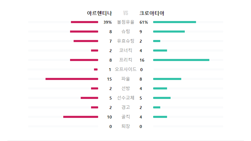 4년전 상황과는 정반대네요. 2018년 러시아 월드컵 조별리그D조에서 만난 아르헨티나와 크로아티아는 달랐습니다. 지금의 점수와 정반대였거든요. 크로아티아의 3대0 완승이었죠.
