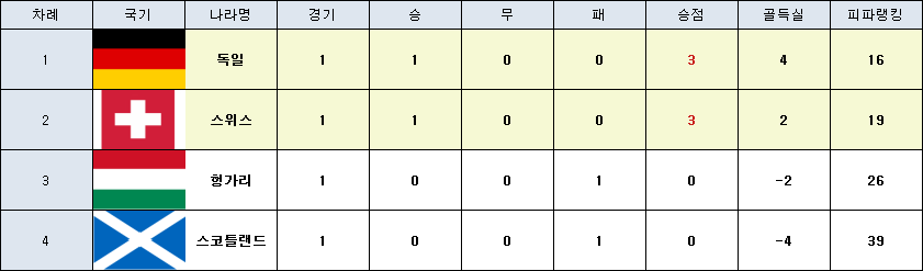| EURO 2024 예선 조별 리그 9월 일정 종료 현재 조별 순위 및 조별 피파랭킹 (0) | 2023.09.14 |