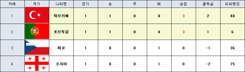 | EURO 2024 예선 조별 리그 9월 일정 종료 현재 조별 순위 및 조별 피파랭킹 (0) | 2023.09.14 |