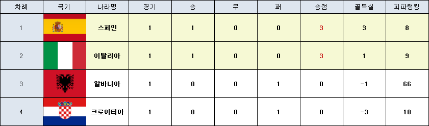 | UEFA 유로 2024 조별리그 정리 및 16강 토너먼트 현재상황 7월1일 기준 (0) | 2024.07.01 |