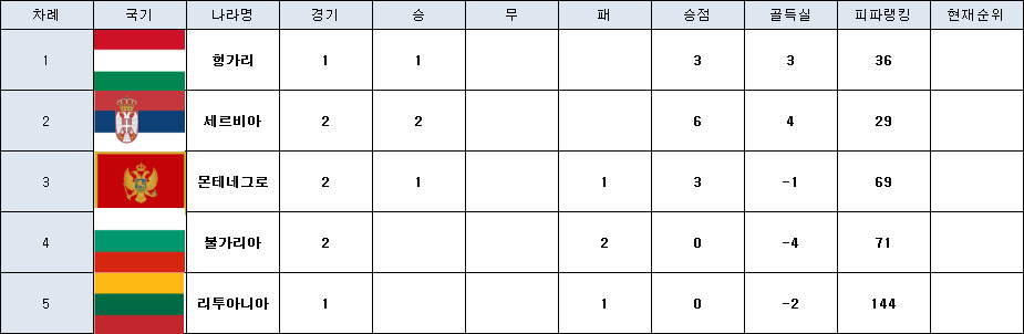 3월달 매치가 마무리 되었습니다. 6월달까지 기다려야 하는데요. 지금까지 조별리그 성적과 피파랭크 확인하겠습니다.