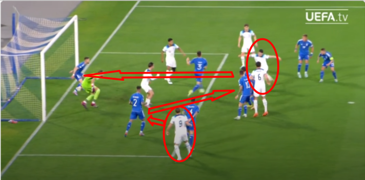 코너킥을 해리케인이 슛을 시도했는데 수비수에 막혔고 리바운드된 볼을 데클란 라이스가 득점으로 마무리했습니다.
