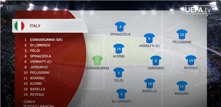 이탈리아의 4 : 3 : 3 포메이션 입니다