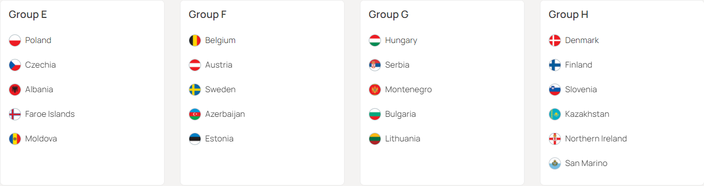E조 : 폴란드, 체코, 알바니아, 페로 제도, 몰도바