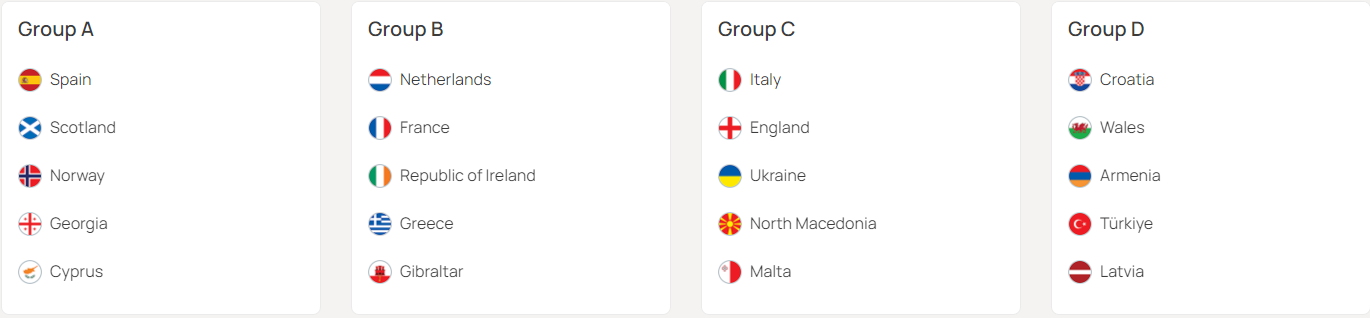 A조 : 스페인, 스코틀랜드, 노르웨이, 조지아, 키프로스