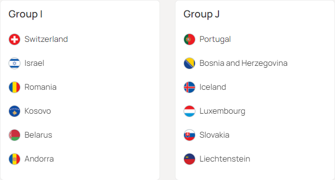 I조 : 스위스, 이스라엘, 루마니아, 코소보, 벨라루스, 안도라