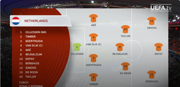 네덜란드 라인업입니다. 4 - 3 - 3 포메이션이네요.