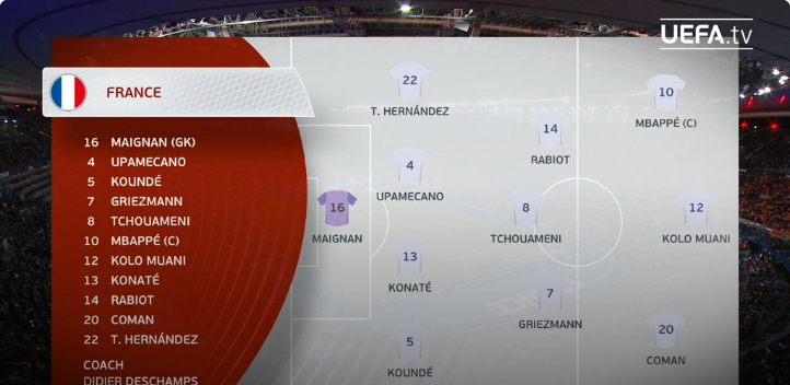 프랑스 라인업 역시 4 - 3 - 3 입니다.