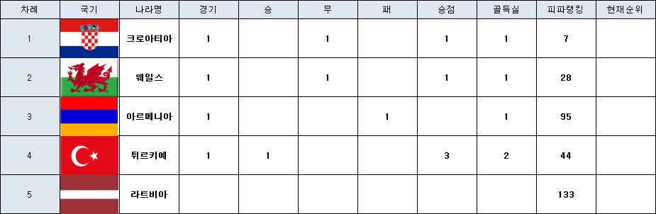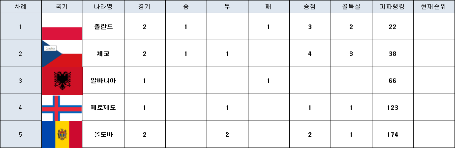| UEFA 유로 2024 예선 조별리그 성적 피파랭크 비교 6월 경기일정 확인 (0) | 2023.03.29 |