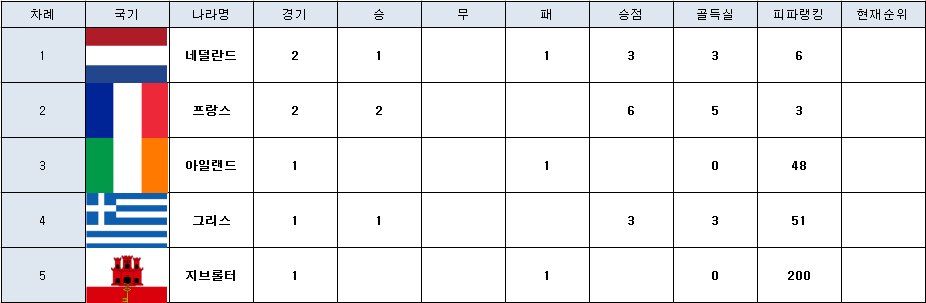 첫경기에서 네덜란드가 프랑스에게 4 : 0 으로 박살나서 네덜란드는 2위를 지켜야 하는데요.