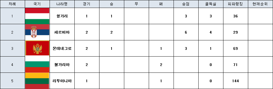 G조가 피파랭킹으로 따지면 확연히 높은순위의 국가가 없는게 특징이네요. G조야 말로 조2위 싸움이 치열할것 같습니다