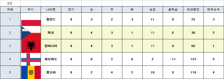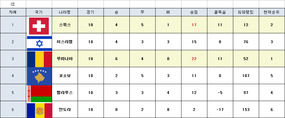 H조는 1~4위가 끝까지 경쟁을 한조입니다. 이조는 피파랭킹 순서대로 순위글 가져갔네요 북아일랜드 제외 ㅠ