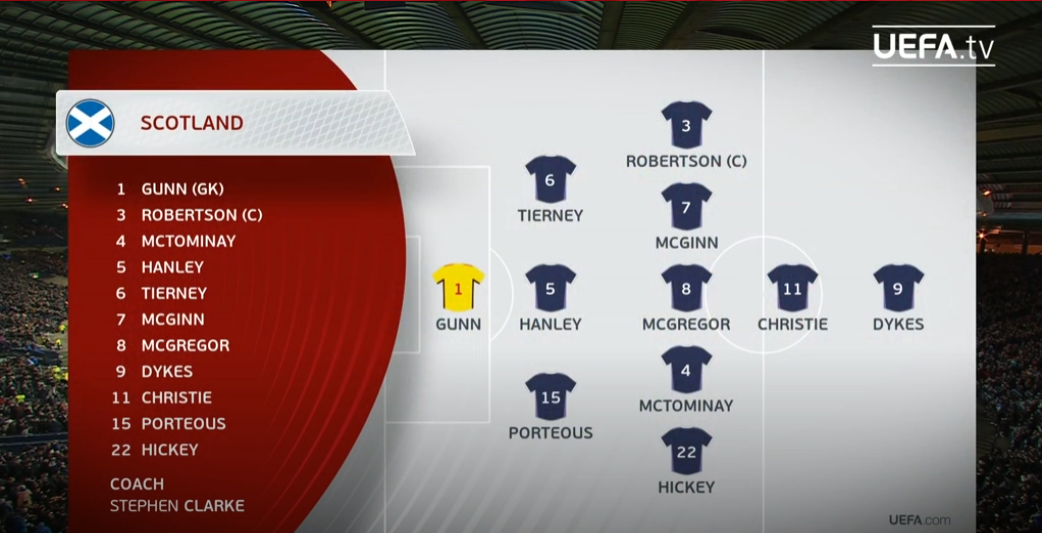 스코틀랜드는 3 - 5 - 1 - 1 포메이션
